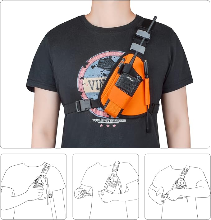 [YNIBST]多用途 無線機チェストリグ ハンディ無線機用 三角型 チェストバッグ 小型ラジオホルスター 無線機・アンテナ保護 オレンジ