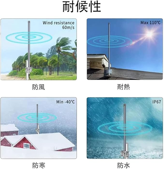 耐久性のあるファイバーグラス レドーム、アンテナの内部構造は銅製で、工業用グレードの構造です。 銅管は回路基板よりも優れています。銅管を使用すると、アンテナの定在波比が低くなり、より高い電力に耐えることができます。 一体型 N 型メス コネクタ。 24時間年中無休の運用に適しています。