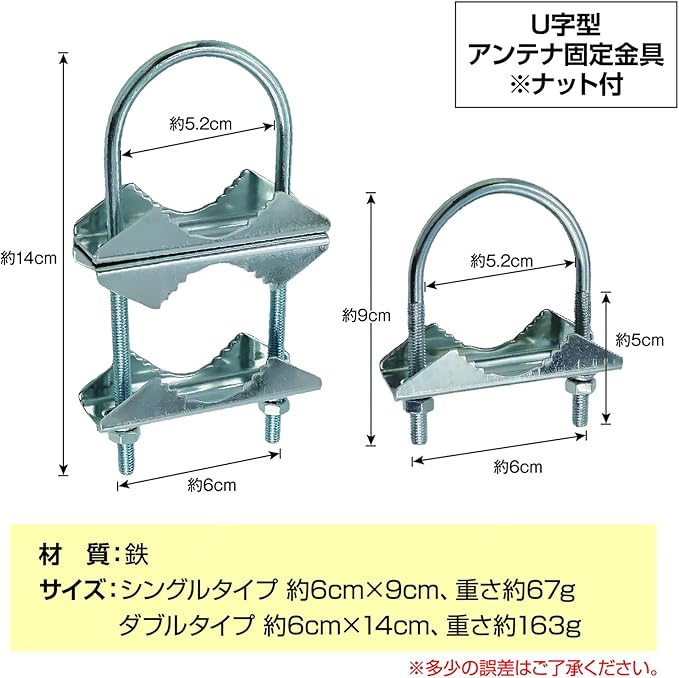 ZERONOWA アンテナマストクランプ Vジョーブラケット Uボルト アンテナ パイプ 固定金具 (シングル4)