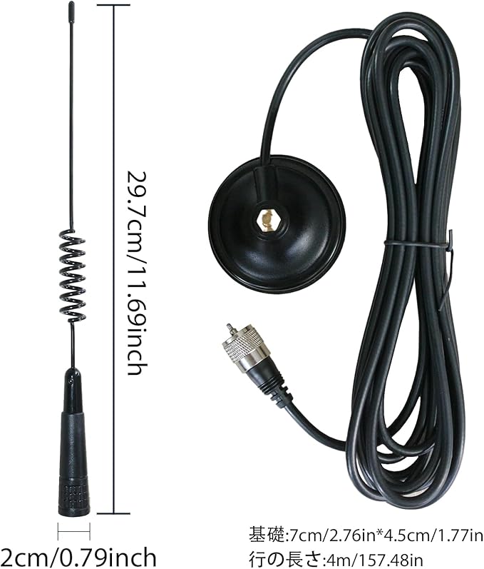アンテナ直径:底部3.5CM尾部3CM、アンテナ長:35CM 吸盤直径:6.5CM、ケーブル長さ:4M