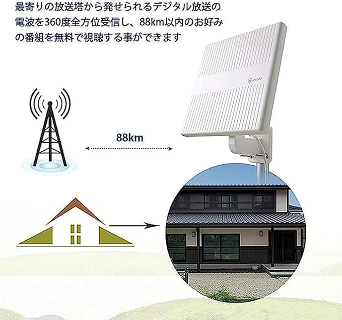 ◎ 【電波対応・受信範囲】当アンテナはVHF 87.5-230MHzからUHF 470-700MHzまで幅広い周波帯の電波に対応します。発信所から88km範囲内、安定に受信できます。