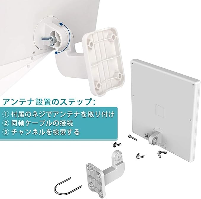 ◎ 【超軽量&簡単設置】超軽量なフラットパネルデザインを採用し、ツール必要なく、両手だけで設置するデザインは省力化を実現できます。パケットに付く5メートル同軸ケーブルは最適切な場所で気軽に取り付けられます。