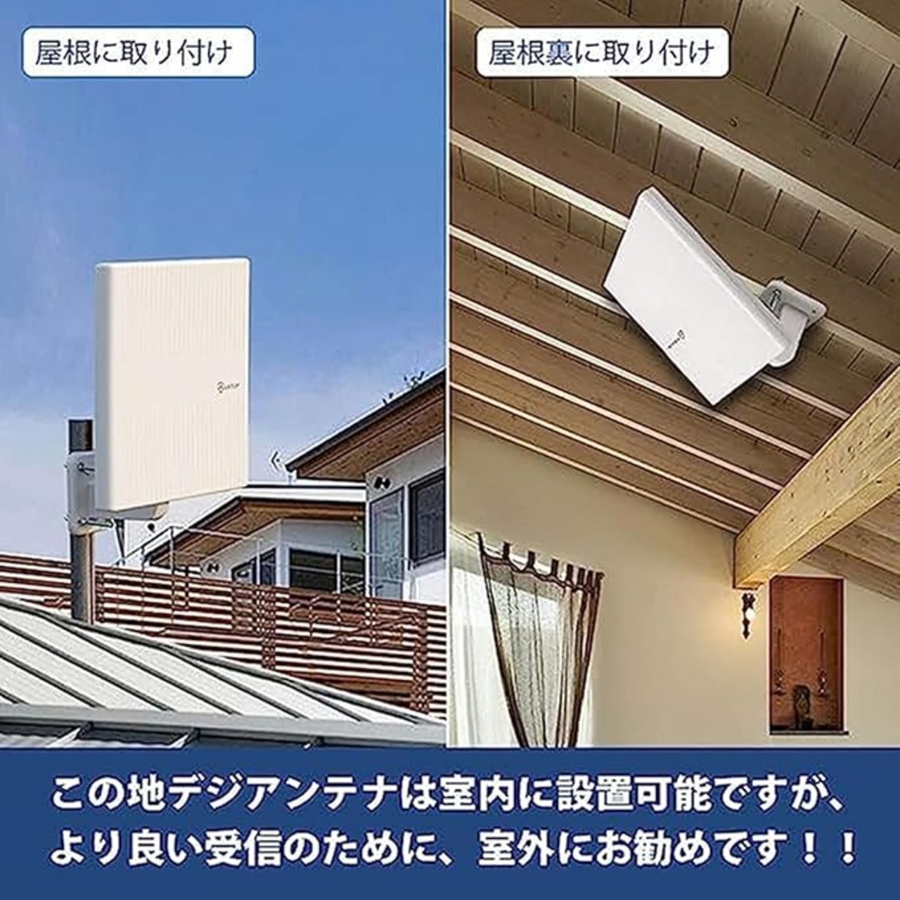 ◎ 【多様な取付場所】アンテナ取付金具を使い、屋根・屋根裏、壁面、ベランダなど様々の場所に設置できます。楽に締める取付デザインは省施工を実現します。
