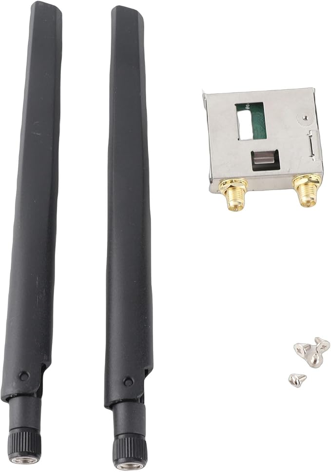 プラグ アンド プレイ: このワイヤレス WiFi アダプター カードはプラグ アンド プレイです。 2本のアンテナと2本のネジが含まれています。