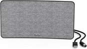 インテリアに調和するファブリック素材を採用した、hama(ハーマー)の屋内用DVB-T2アンテナです。無機質なアンテナのイメージを覆す、グレーとブラックの温かみのあるテキスタイルデザインが特徴です。