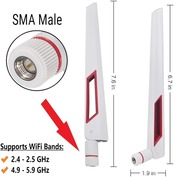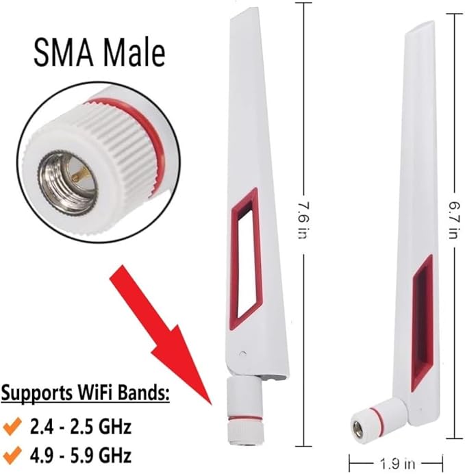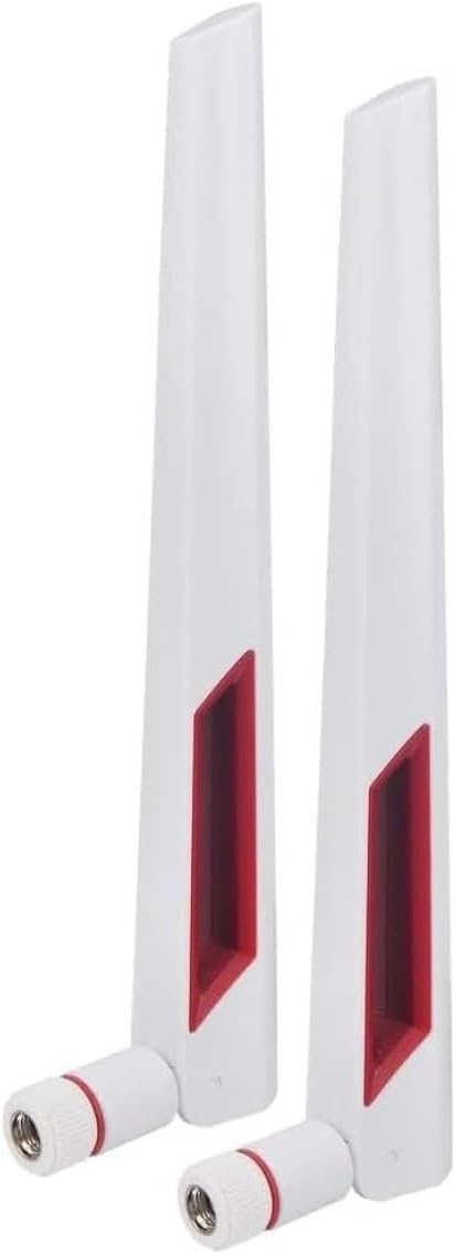 白と赤の 10dBi デュアル バンド シグナル ブースター Wi-Fi アンテナ (2.4GHz/5GHz-5.8GHz) SMA オス コネクタ付き ワイヤレス カメラ、ルーター、ホットスポット用 - 2 パック