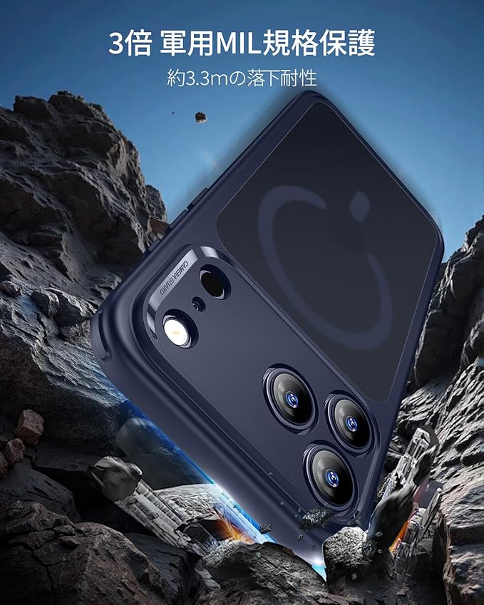 【軍事レベル基準!衝撃から守る全方位ガード】 米軍規格MIL-STD-810Hの落下試験に合格したエアガードコーナー(認証番号:GZMR231203686802)を採用します。このiphone17promax ケース はコンクリートへの高さ3.3メートル落下テストにも耐える設計で、駅のホームでの使用や登山中など、アクティブなシーンでも安心できます。うっかり落とした時も、大切なiPhoneを確実にプロテクトします
