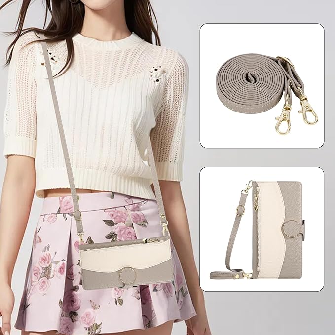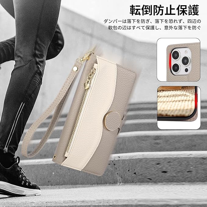 用の iPhone 17 Pro Max ケース 手帳型 ショルダー スマホケース いphone17promax ケース おしゃれ 2色パッチワーク 携帯カバー iphone17promax ケースカバー 小銭入れ カード収納 ジップ付き 財布型 アイフォン17 プロマックス 手帳型ケース 肩掛け 斜め掛け ストラップ付き スタンド機能 マグネット式 可愛い 女性 贈り物-グレー