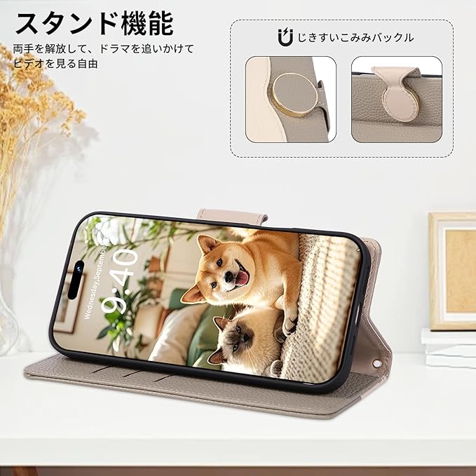 『手提げと斜め掛けの3way仕様』iphone17pro max ケース は2本の(長+短)ストラップ付きを提供しており、手提げ、ショルダーや斜めかけ(長さ調節可能)として活用できる。写真撮影、散歩、買い物、荷物の多い時やアウトドアで、手軽に素早く使える。二重保護する丸型マグネット留め具が付いており、本体を固定し、開閉するのも簡単に操作できる。便利な横置きスタンド機能が付いて、好きな角度で動画視聴、Web会議、ビデオ通話や勉強などがより便利になる。