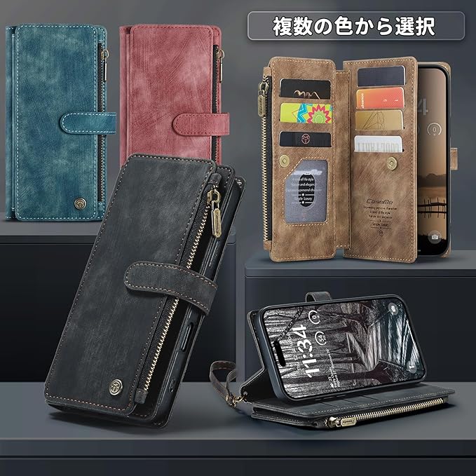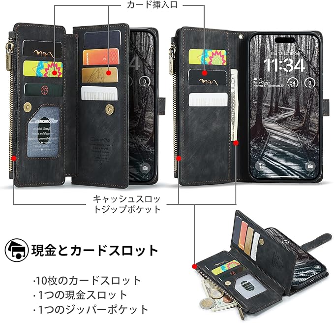 【優れた収納機能】 この商品は新デザインです、ケースの側面には7つのカードスロットと1つのフリーポケットがあり、ジッパー付きの収納スペースもあります。カードを持ち運びしやすいカードスロット設計のビジネスウォレットは、あなたの人生をより便利にします、運転免許証、交通カード、クレジットカード、ICカード、マンスリーパス、名刺などを収納できます