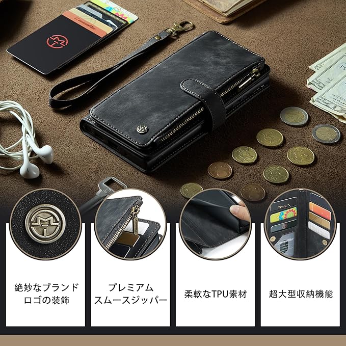 iPhone 17 Pro Max 対応 ケース 手帳型 カバー PUレザー 多財布デザイン スタンド機能付き 磁気バックル付き カード収納 コイン収納 アイフォン 17 pro max ケース 手帳型 大容量財布型 収納ポケット 衝撃防止 擦り傷防止 スクリーン/カメラ保護 実用性高 iPhone 17 pro max 財布型ケース (ブラック)