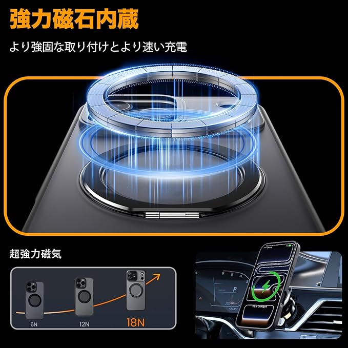【MagSafe対応】iphone17 pro maxの代替品 magsafe対応ケースは、背面に薄くて強力なマグネットを内蔵しており、ワイヤレス充電や車載ホルダー、アクセサリーとの安定した接続が可能です。差し込む必要がなく、より簡単かつ迅速に充電できます。