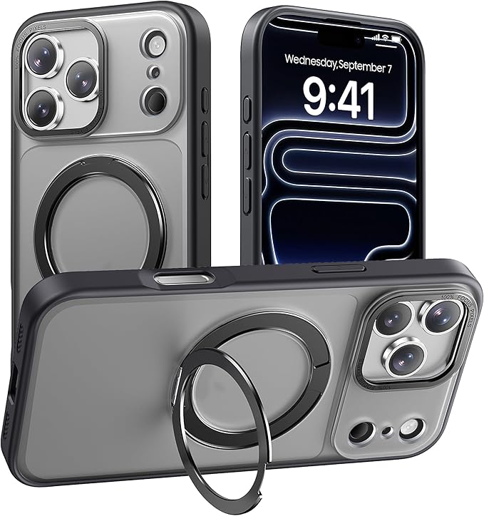 【多機能360度回転スタンド】Mcoifull iPhone 17 Pro Max との互換性あり ケース マグネット搭載 ワイヤレス充電 耐衝撃 マット感 半透明 指紋防止 アジャスタブルスタンド アイフォン17プロマックスケース くろ