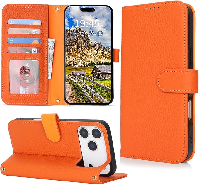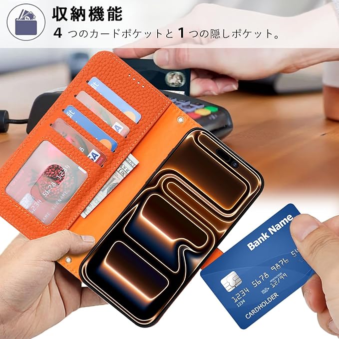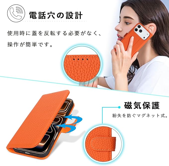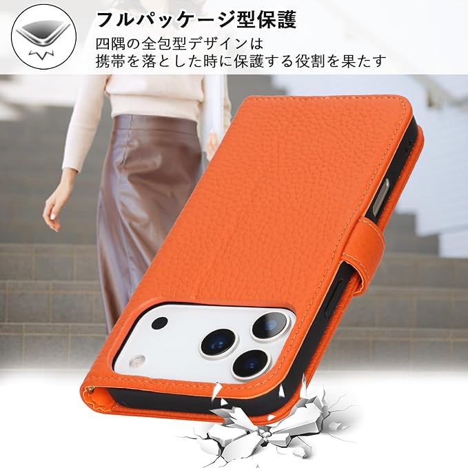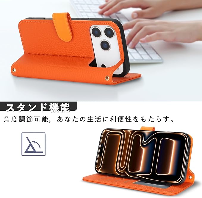 対応 iPhone 17 Pro Max ケース 手帳型 カード収納 スタンド機能 アイフォン17 Pro Max ケース 本革 大容量 耐衝撃 カード収納 iPhone17 Pro Max ケース 手帳型 iphone 17 Pro Max レザー カバー オレンジ