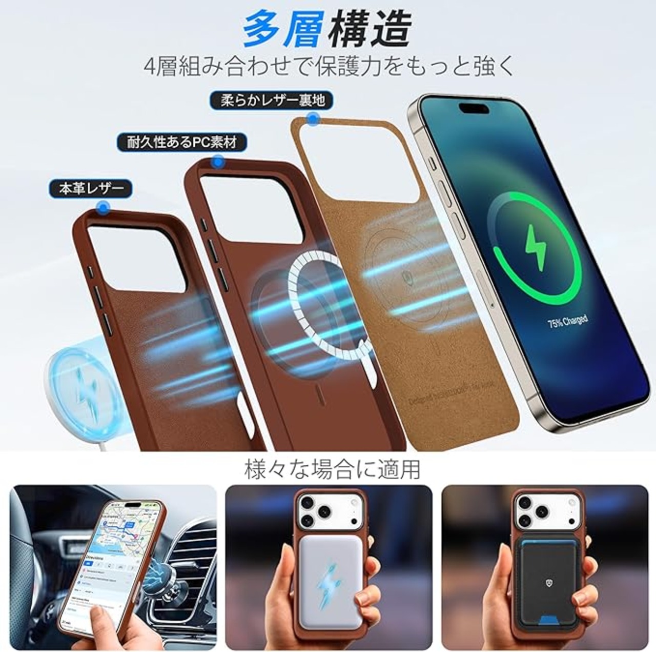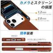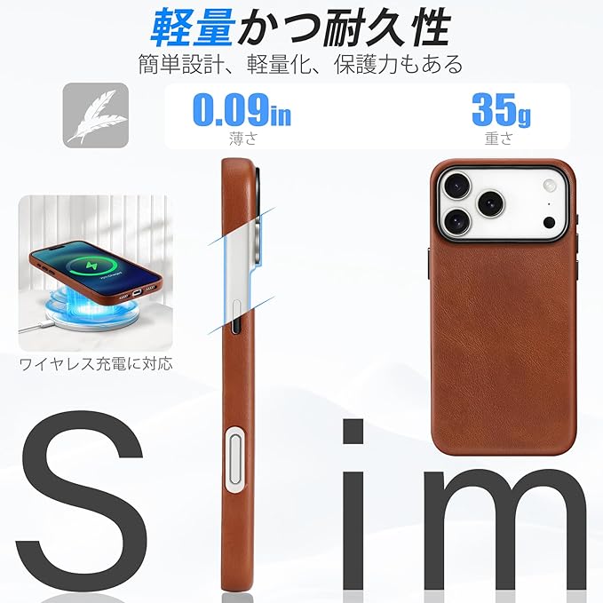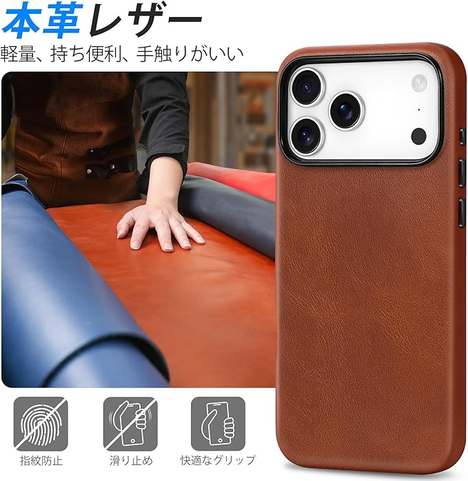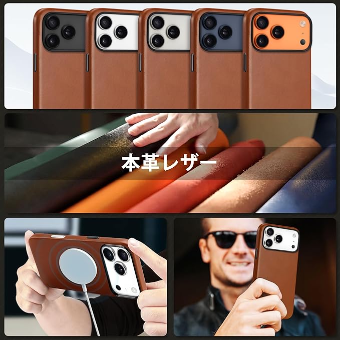 SHIELDON iPhone 17ProMax 対応 ベーシックケース 本革レザー 6.9インチ 5G 薄型 ワイヤレス充電対応 磁気充電可 背面保護 軽量 滑り止め 指紋防止 耐久性 カメラ保護 携帯便利 アイホン17プロマックス 対応 スマホカバー 2025年発売 レトロブラウン