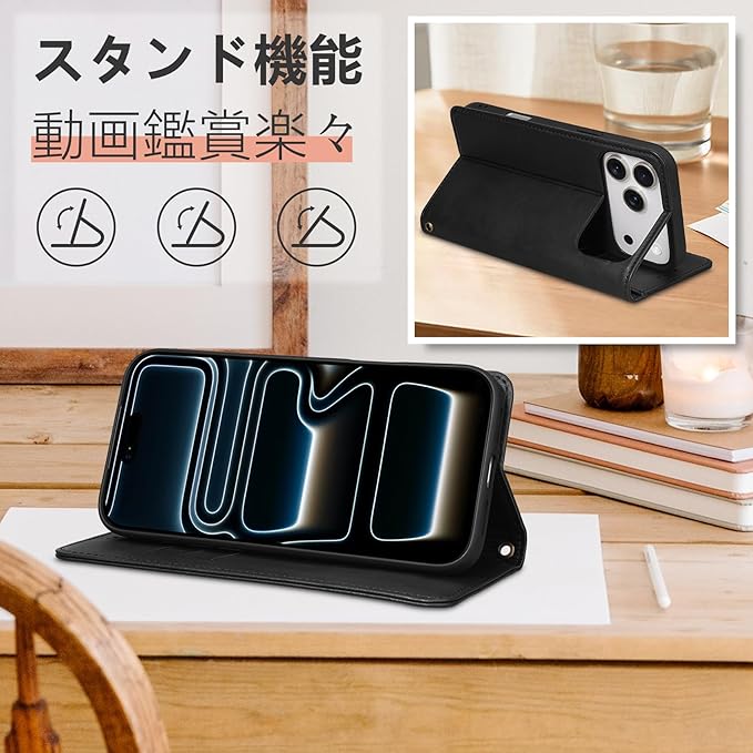 カード収納:アイフォン 17 プロマックス ケース内側には便利なカードポケットが付属しており、名刺やクレジットカード、IDカードを収納可能です。ご注意:収納枚数やカードの厚みによっては、蓋が閉まらない場合がありますのでご了承ください。