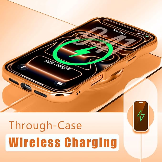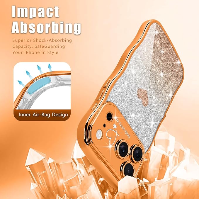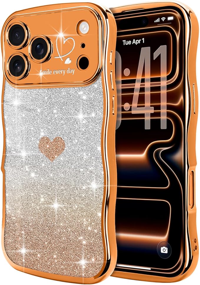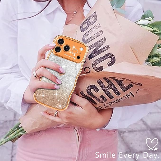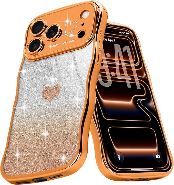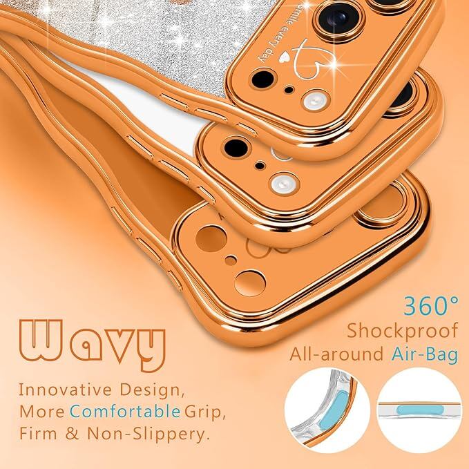 Teageo iPhone 17 Pro Max 対応 ケース キラキラ カーリー ウェーブ 軽薄型 柔らかく シリコン 衝撃保護 落下防止 携帯電話カバー 適用 iPhone 17 Pro Max スマホケース(オレンジ)