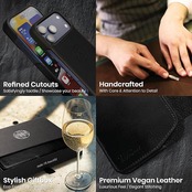ArcFold – 新次元のフォンウォレット 革新的なカードスロットが扇形に開き、必要なカードへ瞬時にアクセス可能。内部には紙幣ポケットを備え、上質で洗練された使い心地を実現しています。さらに、2枚の頻用カード用クイックグラブ縦型スロットとTip-to-Lock 保護機能を採用し、日常に特別な利便性をもたらします。