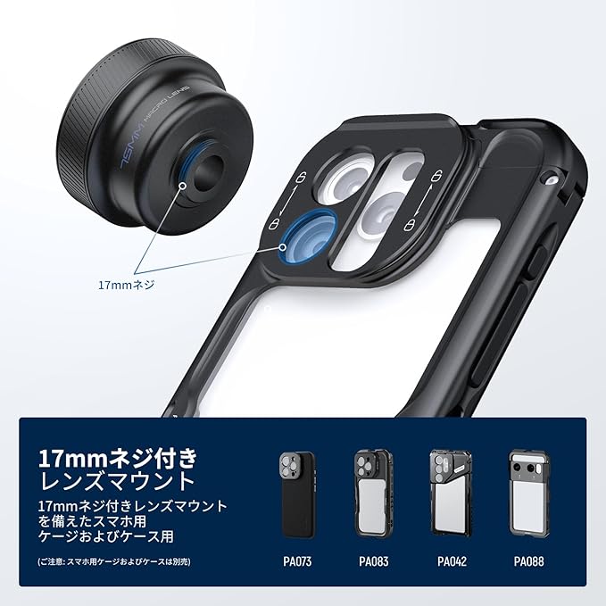 NEEWER 75mmスマホレンズ マクロスマホカメラレンズ 17mmネジ付きレンズクリップ 10倍倍率 5群5枚レンズ バックプレート/スマホケージ/ケース付き モバイル写真撮影用 コンパチブル iPhone 17シリーズ/16 Pro Max/15/14/13 Pro Max/Android/Galaxy S25 Ultra LS-73