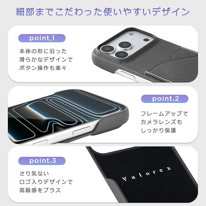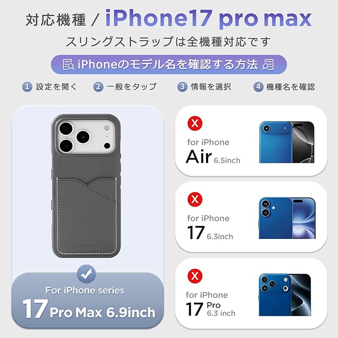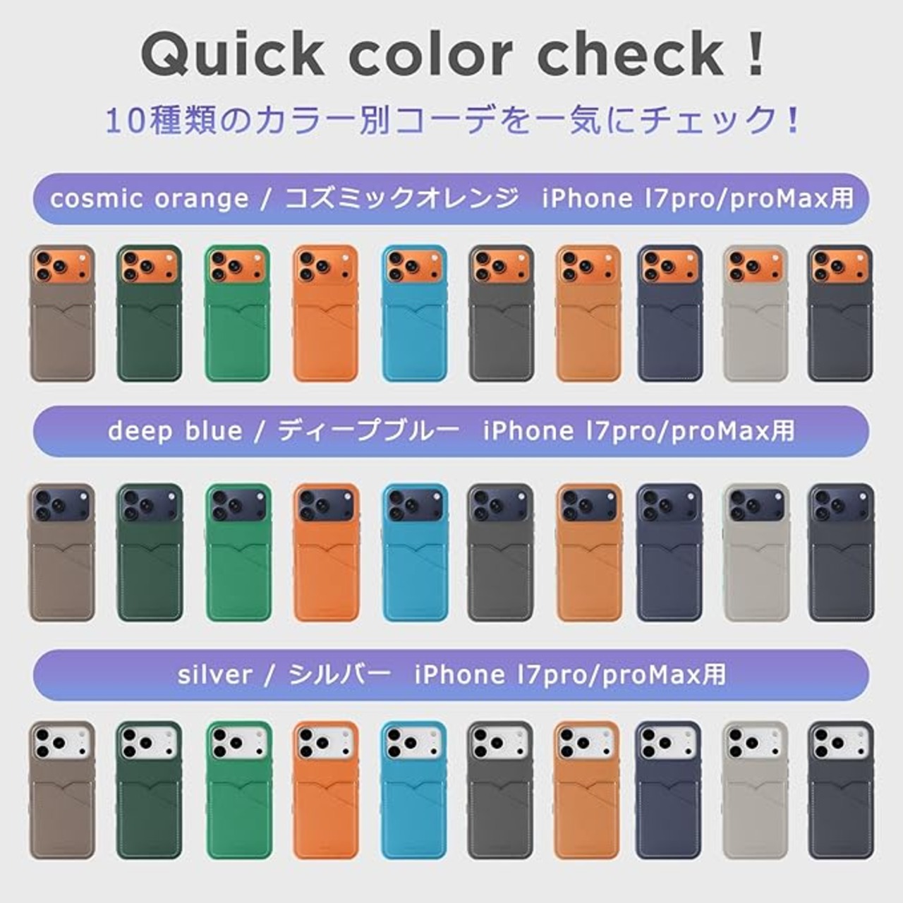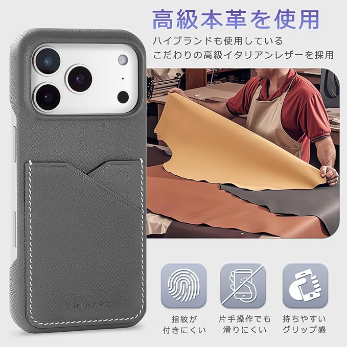【素材】素材には高級ブランドが使用するイタリア製のエプソンレザーを採用。世界中のブランドから評価される高級本革です。 手に取って頂ければ本革の素材の良さがわかって頂ける商品となっております。iPhone 17 Pro Max(6.9インチ、2025年発売)のみに対応しておりますが、他の型番が併用できません
