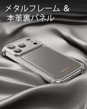 高級素材の組み合わせ:この iPhone 17 Pro Max ケースは、メタルフレームと本革製バックパネルを採用。メタル素材が構造の堅牢性を確保する一方、本革バックは柔らかな触感と高級な質感を提供し、実用性と美感を両立させています。