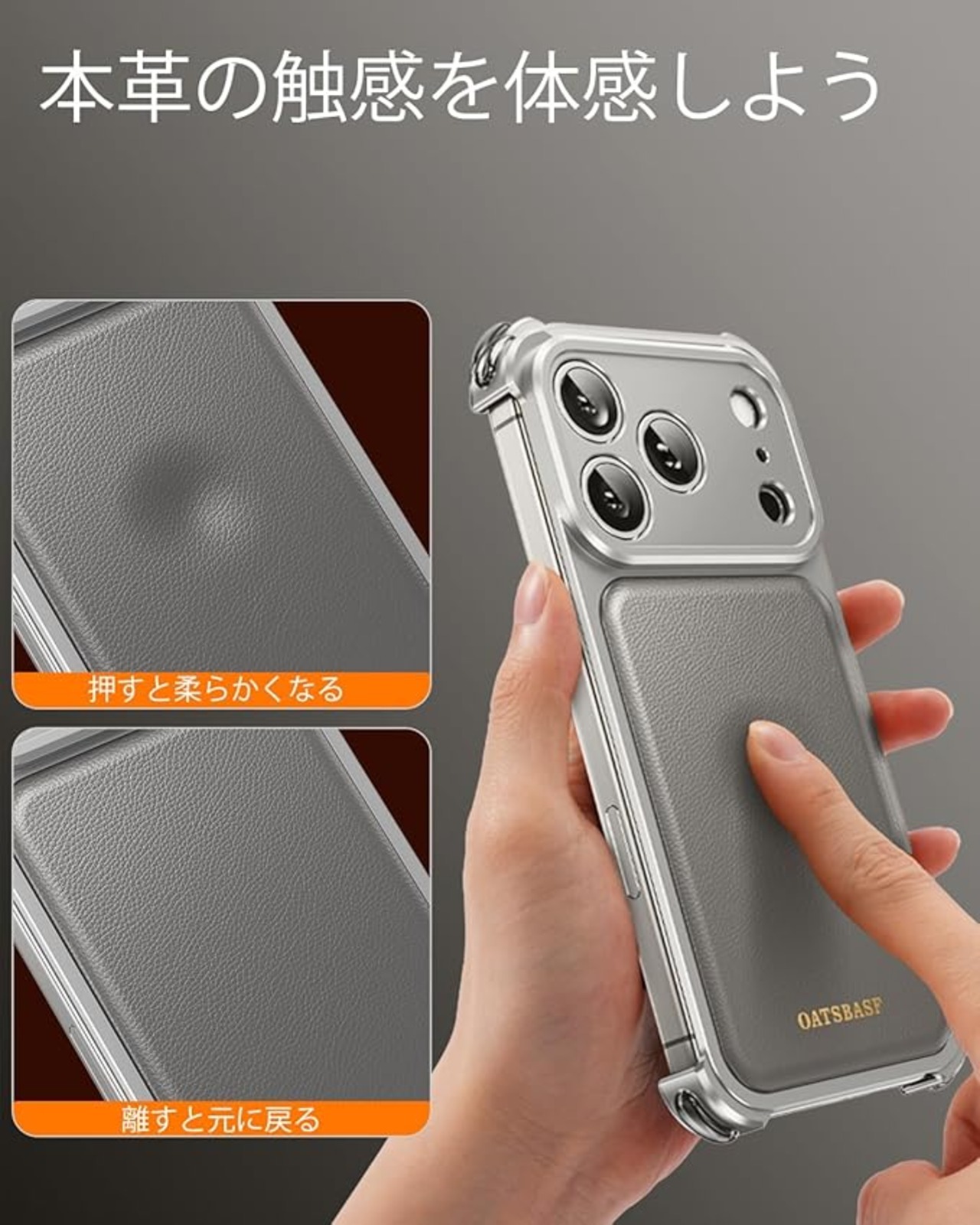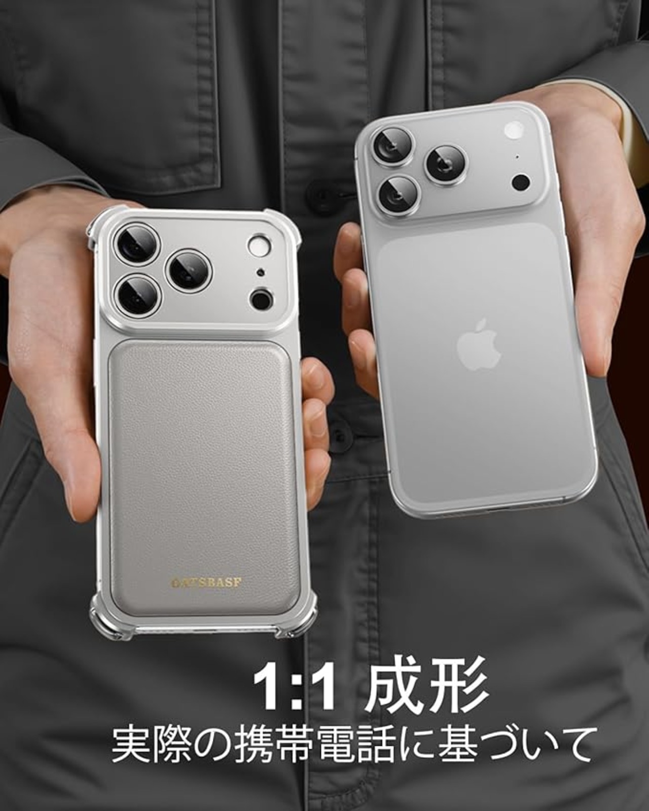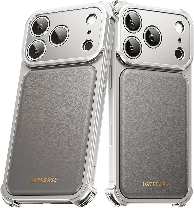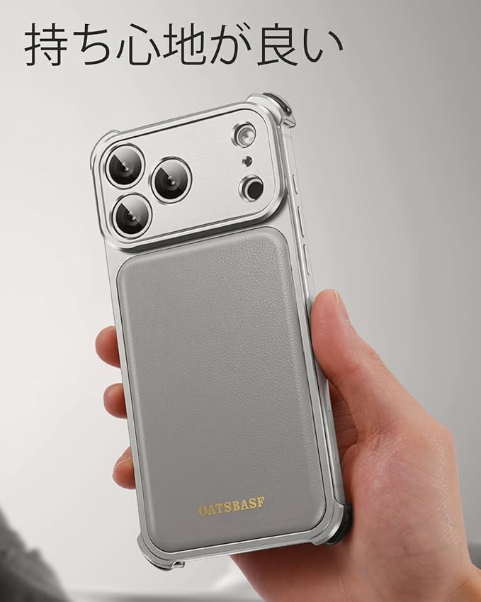 OATSBASF for iPhone 17 Pro Max ケースフルカメラ保護 MagSafe 充電器対応 メタルフレーム 本革製バックパネル ,天然チタン