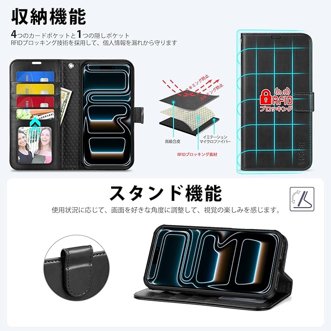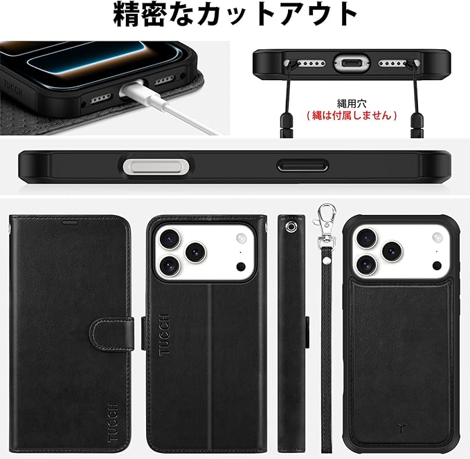 TUCCH iPhone17 Pro Max 対応 ケース 手帳型 2 in 1 分離式 6.9インチ ストラップ付き 取り外し可 RFIDブロッキング 4つカードポケット 横置きスタンド機能 衝撃吸収 全面保護 PU合皮 あいふぉん17プロマックス 対応カバー 2025年発売 5G ブラック