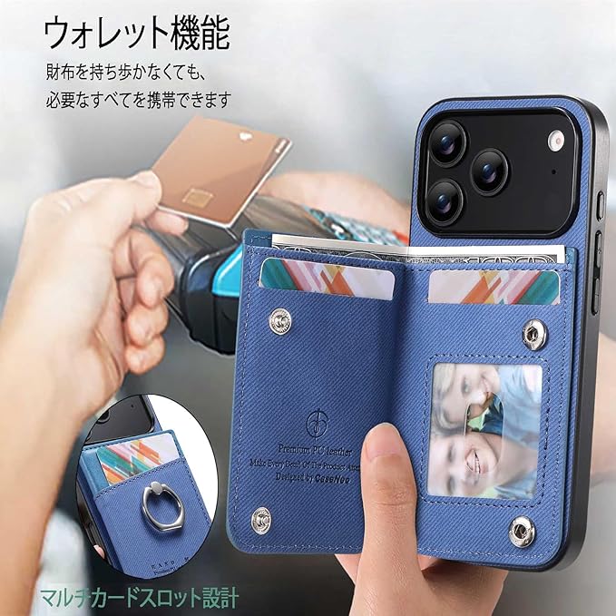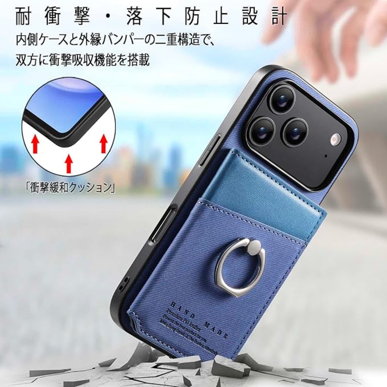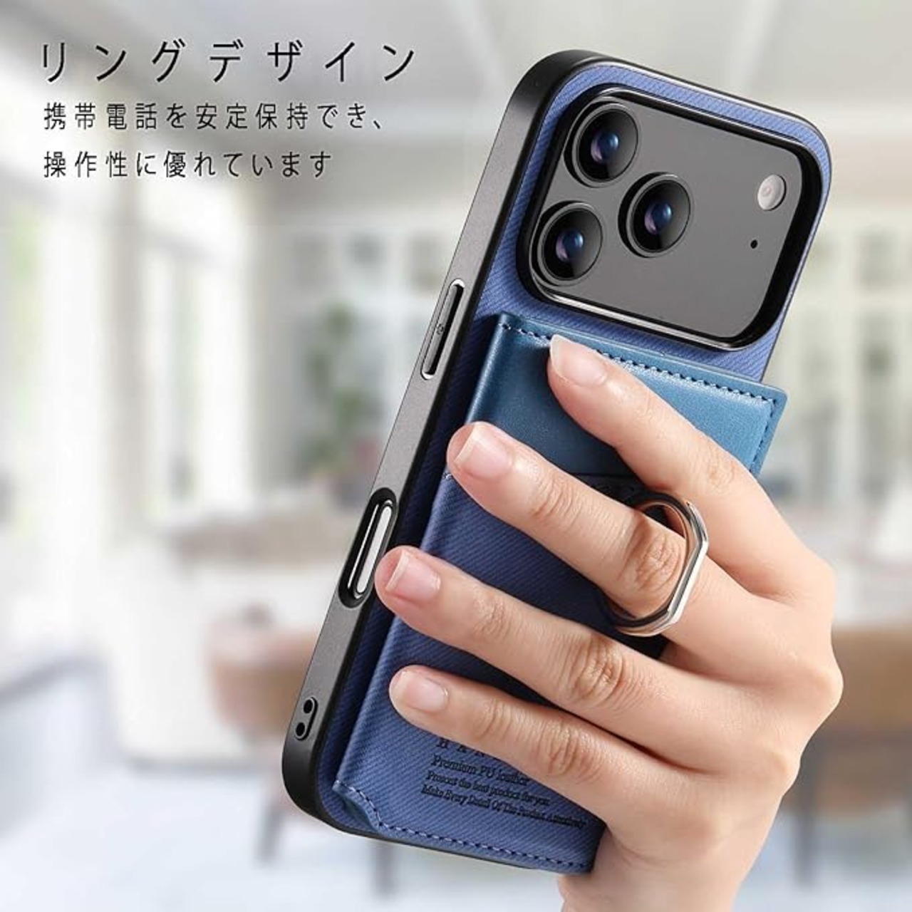 衝撃吸収機能:iphone17 pro max カバー カード収納 リング は高品質のPUレザーと柔軟なTPU素材で作られており、放熱性と耐衝撃性に優れ、傷やほこりを防ぎます。手触りが良く、スマートフォンの取り付けと取り外しが簡単です。iphone17 pro maxケース リング付き カメラは画面より少し高くなるように設計されており、すべての側面を完全にカバーし、落下防止性能を高め、携帯電話を包括的に保護します