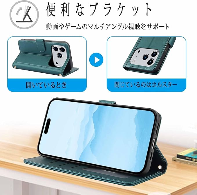 全面保護:この いphone17 promax 手帳型ケース ショルダー はマグネット式の留め具で、携帯電話とカードをしっかり保護します。スタンドとしても使用でき、必要に応じて角度を調整できるので、ビデオチャット、読書、映画鑑賞、ハンズフリー作業など、両手が自由になります