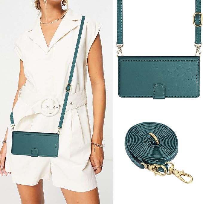 For いPhone17Promax ケース 手帳型 iPhone 17 Pro Max ケース ショルダー スマホケース iphone17プロマックス カード収納 アイホン17プロマックス 財布型 ストラップ 肩掛け あいふおん17プロマックス カバー スタンド機能 高级PUレザー アイフォン17プロマックス 全面保護 無地 シンプル 耐衝撃 おしゃれ - ダークグリーン