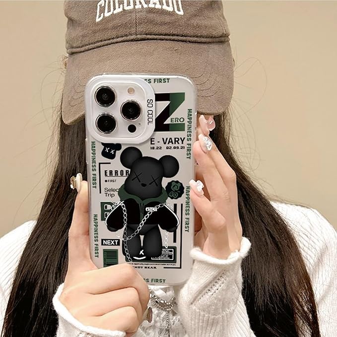 Arpe カウズ ベアブリック スマホケース iPhone 17 Pro Max 用 ケース 全面レンズ保護 アイフォン 17 Pro Max 用 ケース (6.9インチ) 超薄型 傷つきにくさを向上 シリコーン カウズト Bear カラー(白)