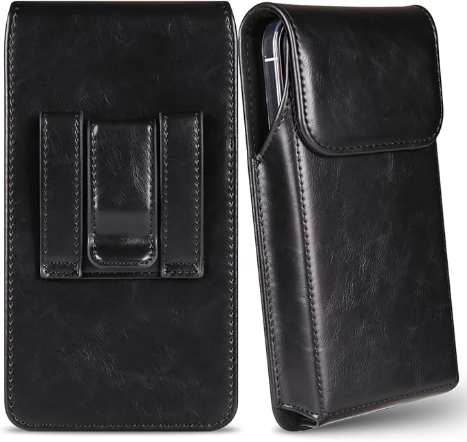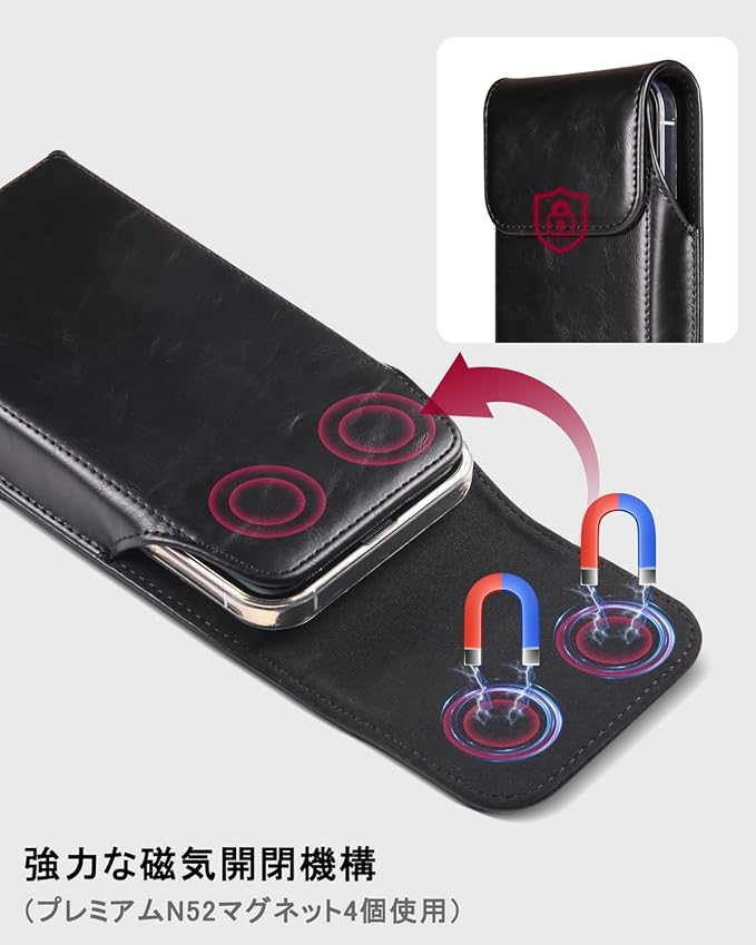 Miimall iPhone 用スマホ ベルトケース ホルダー レザー製 縦 6.9インチのスマホ対応 iPhone用スマホポーチ iPhone 17 Pro Max対応 作業用 アウトドア アイフォン 17 ProMax用スマホベルトホルダー ブラック
