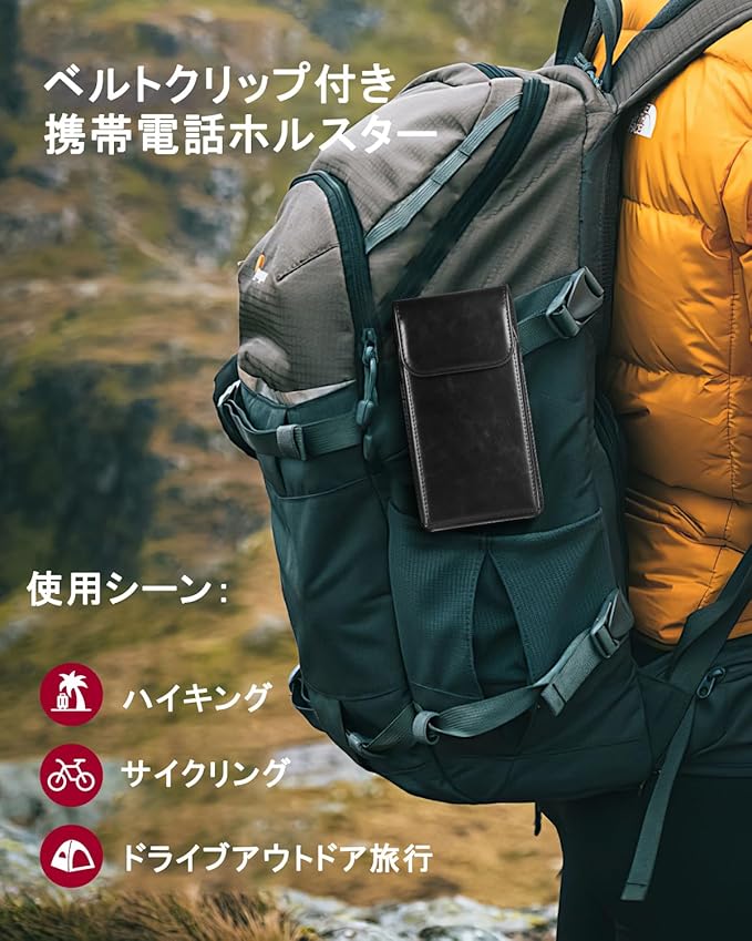 【高級感溢れる素材】手触り良い、汚れが付きにくく、軽量、耐久性あるPUレザーで作られたこのスマホホルダー ベルトは質感よく厚みがあって、裏地には傷つきにくい手触りの良いベルベット調を使用し、スマホをしっかりと保護します。カジュアルでもフォーマルでも活躍の場が広いシンプルなデザインです。父の日、誕生日、記念日、バレンタインなどの贈り物に最適です。