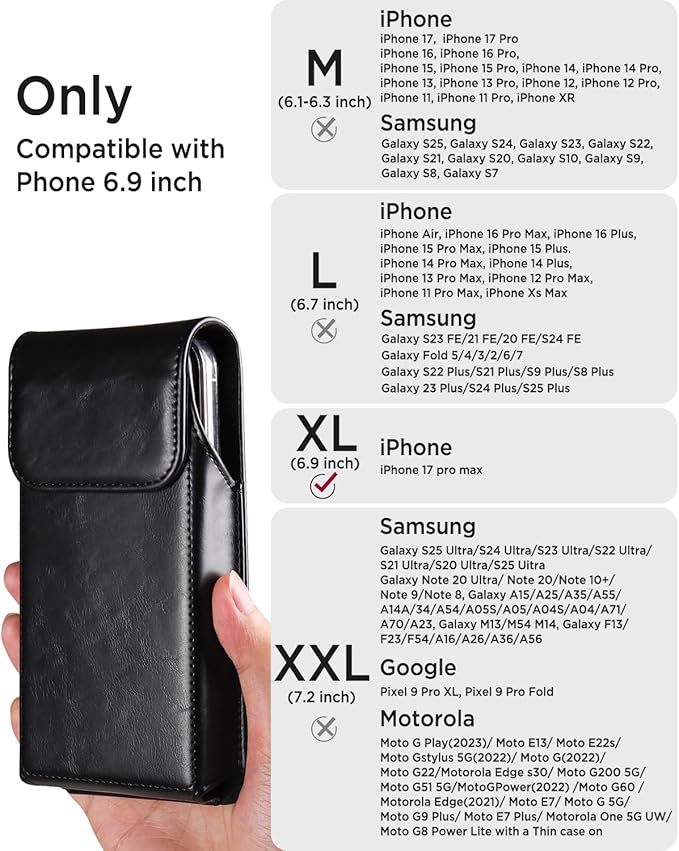 【高い互換性】iPhoneの6.9インチまでのモデルと互換性があるスマホベルトケースです。(対応機種:iPhone 17 pro max)他の機種に対応できるサイズもご用意しておりますので、お使いのスマホのサイズをご確認した上ご注文お願いいたします。