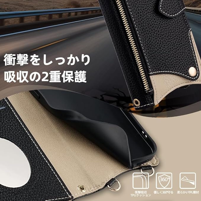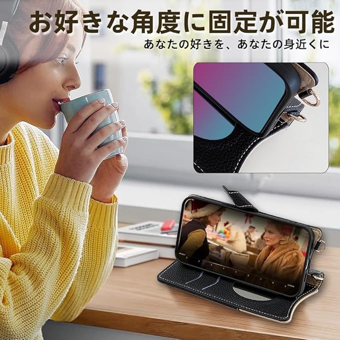 【多角度対応、安全な磁気吸引】❶iPhone17 Pro Maxカバーの背面を折りたたむだけで、どんな角度にも調整できます。動画視聴時もビデオ通話時も、携帯カバー が最適な角度を維持するので、両手が自由になり、より快適にお楽しみいただけます。❷iPhone17 Pro Max 携帯 カバーは磁気安全バックルです。軽い吸引力でバックルできます。カードウォレットとは完全に分離されているため、カードの磁気に影響を与える心配はありません。バッグに入れても自然に開いてしまう心配はありません。