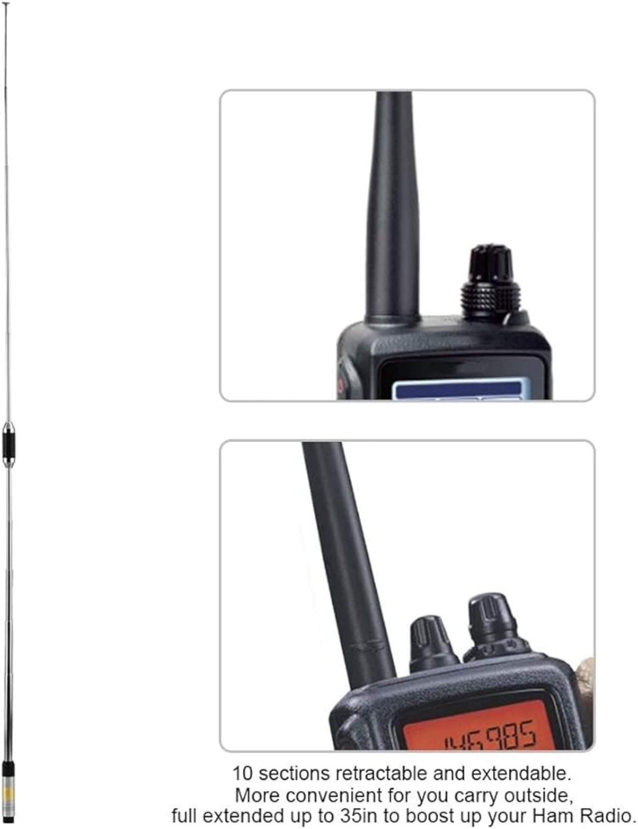 【ポータブルアンテナ】外に持ち運ぶのに便利で、最大35インチまで延長してハムラジオをブーストします