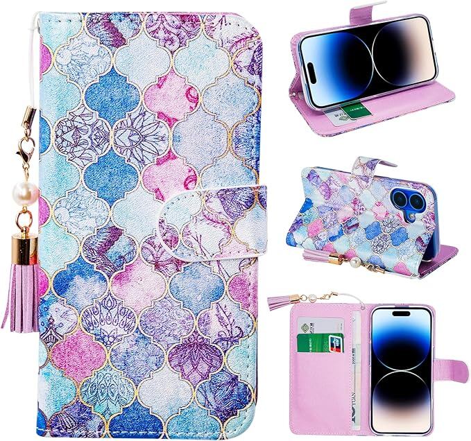 MaKaWa for iPhone 17 Pro Max ケース 手帳型 あいほん17 Pro Max 携帯カバー カード収納 スタンド機能 アイフォン17 Pro Max ケース 手帳型 シンプル 軽量 耐衝撃高級PUレザー 放熱性 汗や指紋防止 全面保護 耐汚れ 花柄 ストラップ 可愛い 女性用