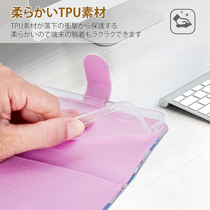 全面保護と素材:外装カバーには高品質な人工皮革(PUレザー)を採用しており、放熱性・耐衝撃性に優れ、肌触りも良好で、ホコリの侵入を防止します。内側のケースはTPU素材の柔軟性のあるソフトケースで、本体を360 の衝撃から確実に保護します。