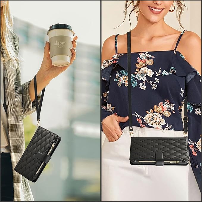 For iPhone 17 Promax ケース 手帳型 アイフォン17 プロマックス ケース ショルダー カード収納 スマホケース いphone17Promax 財布型 スタンド機能 携帯カバー 肩掛け ファスナー あいふおん17 max カバー ストラップ チャック付き アイホン17 プロマックス 小銭入れ RFIDブロッキング 耐衝撃 おしゃれ - ブラック