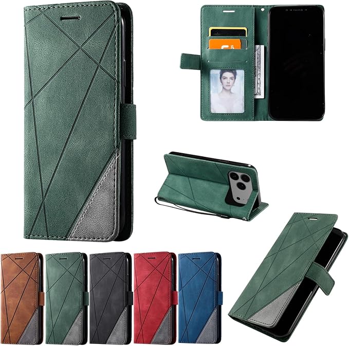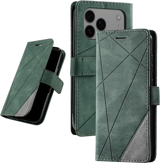 UnivoColors iPhone 17 Pro Max 手帳型ケース カード収納 スタンド機能 サイドマグネット TPUケース 軽量 ストラップ付き QI充電対応 横置き機能 防指紋 レンズ保護 全面保護(グリーン)