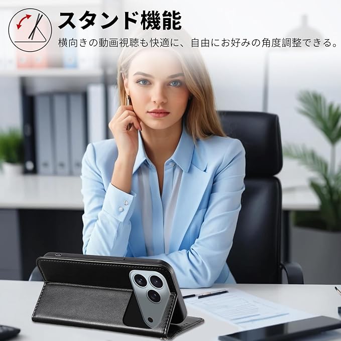 【スタンド機能】iphone 17 promax ケース 携帯電話スタンドと保護ケースが一体化したフリップカバー保護ケースです。携帯電話保護ケースとしてだけでなく、携帯電話スタンドとしても使用でき、横置きや斜め置きに対応し、あらゆる角度に調整できるため、両手が自由になります。一体型デザインで、生活をより便利にします。