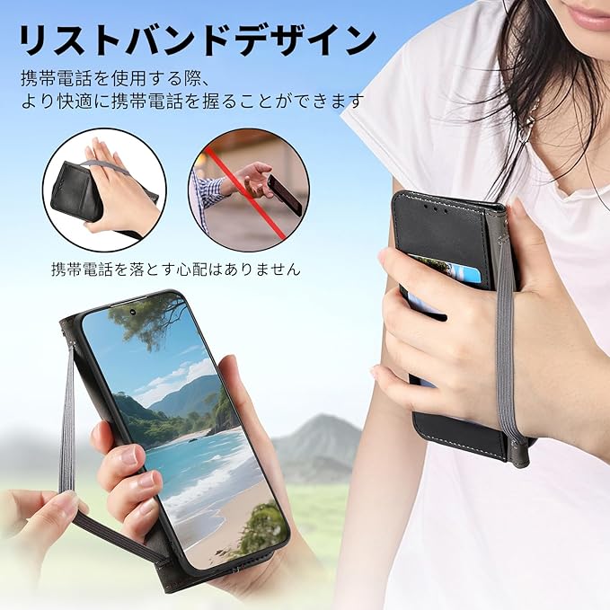 【リストバンドのデザイン】このいphone17promax ケース 用ユニバーサル携帯電話ケース用に設計されたレザーケースは、内蔵の磁気吸引設計により、ベルトなしでもしっかりと閉じることができます。さらに、携帯電話ケースの内側には強力なゴムバンドが付いており、携帯電話を使用するときに落とす心配がなく、より快適に携帯電話を保持できます。