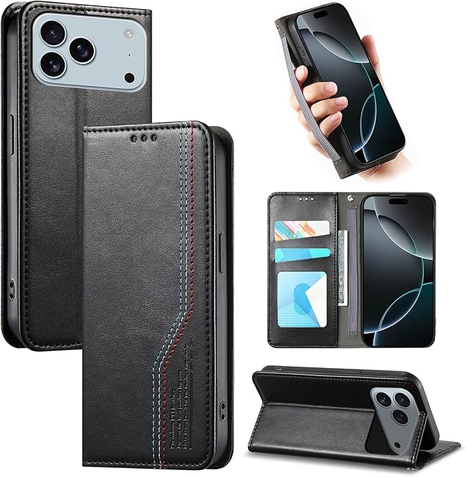 対応 iphone 17 pro max ケース 手帳型 スタンド機能 いphone17promax ケース カード収納 iphone17プロマックス カバー 財布型 アイフォン17プロマックス保護ケース マグネット式 財布付き PUレザー 耐衝撃 全面保護 ストラップホール付き リストバンドのデザイブラック