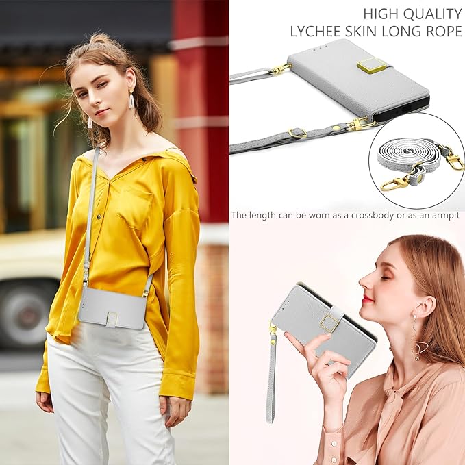向けのiPhone 17 Pro Max ケース 手帳型 用のいPhone17 Pro Max ケース 財布型 カード収納 適用 アイフォーン17プロマックス ケース ショルダー 小銭入れ 斜めがけ 肩掛け 適用 あいほん17プロマックス スマホケース スタンド機能 スクエアマグネット留め具 携帯カバー 高級PUレザー ライチ柄エンボライン 全面保護 人気 (シルバー)