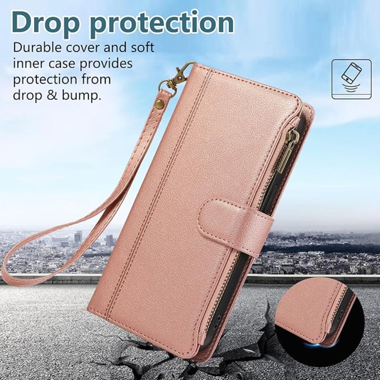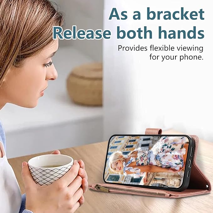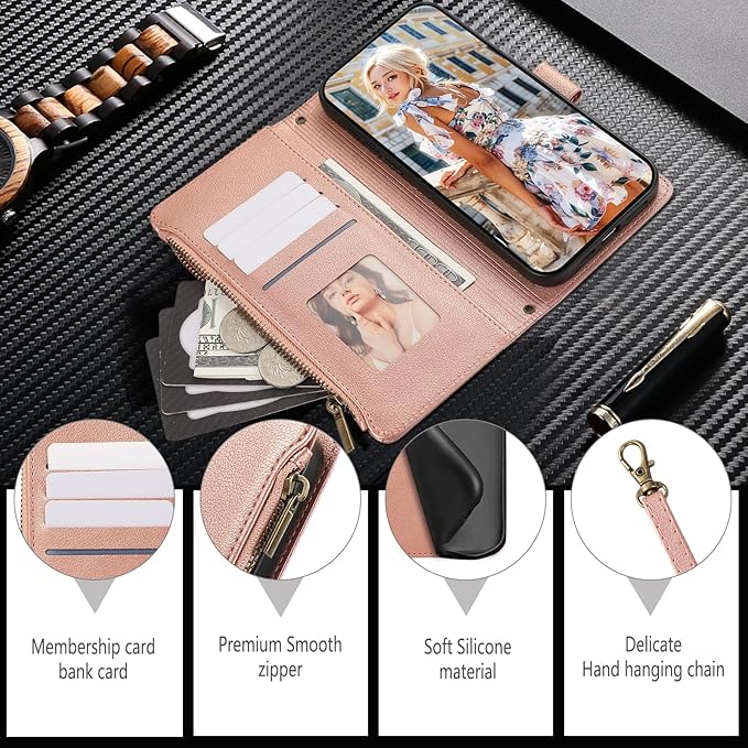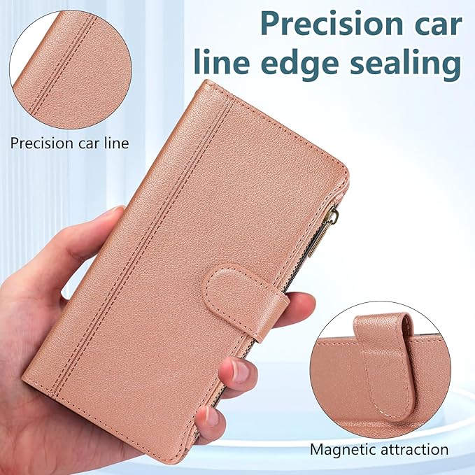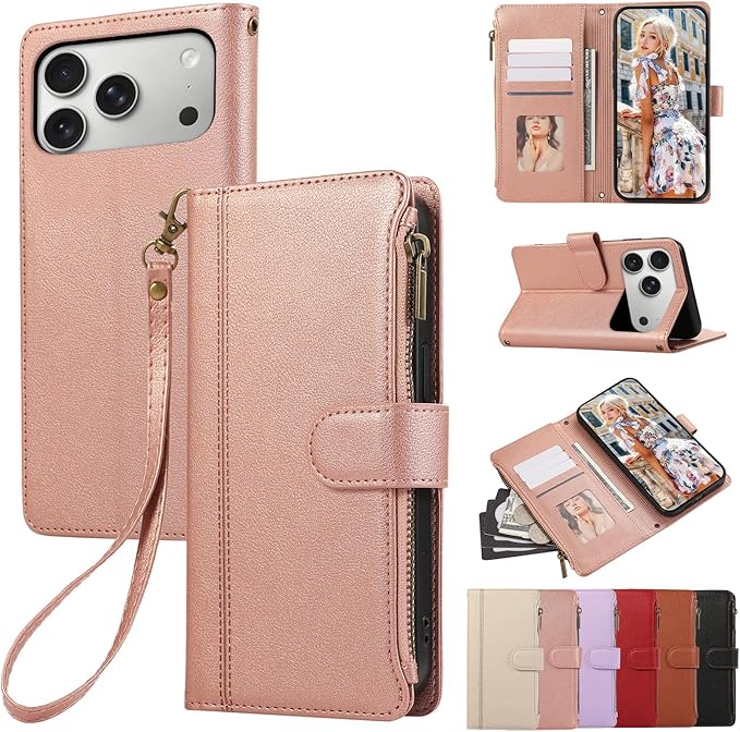 用の iphone 17 Pro Max ケース 手帳型 小銭入れ ファスナー型 いphone17promax ケース 手帳型 携帯カバー アイフォン17プロマックス ケース コインポケット カード収納 財布型 アイフォン17pro max 手帳型ケース スタンド機能 マグネット式 iphone17 proMax スマホケース 同色ストラップ付き 薄型 耐衝撃 - ローズゴールド