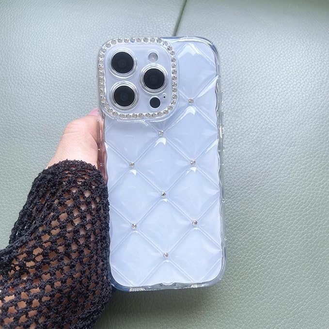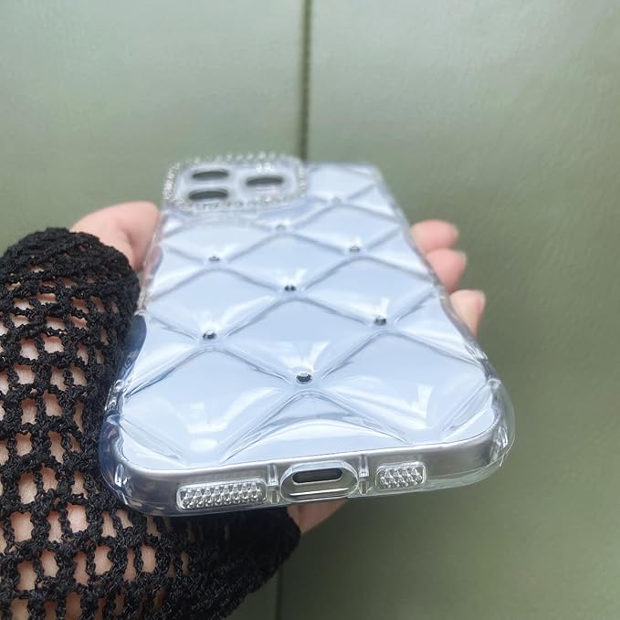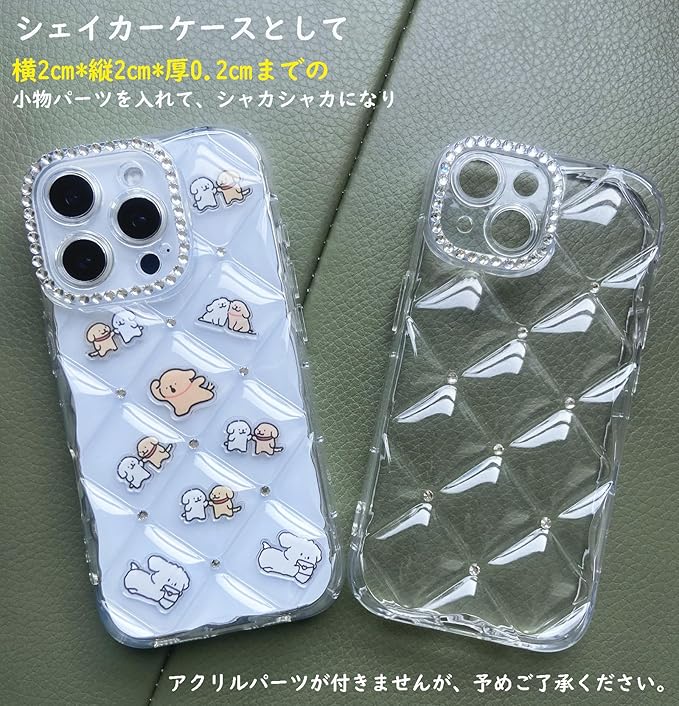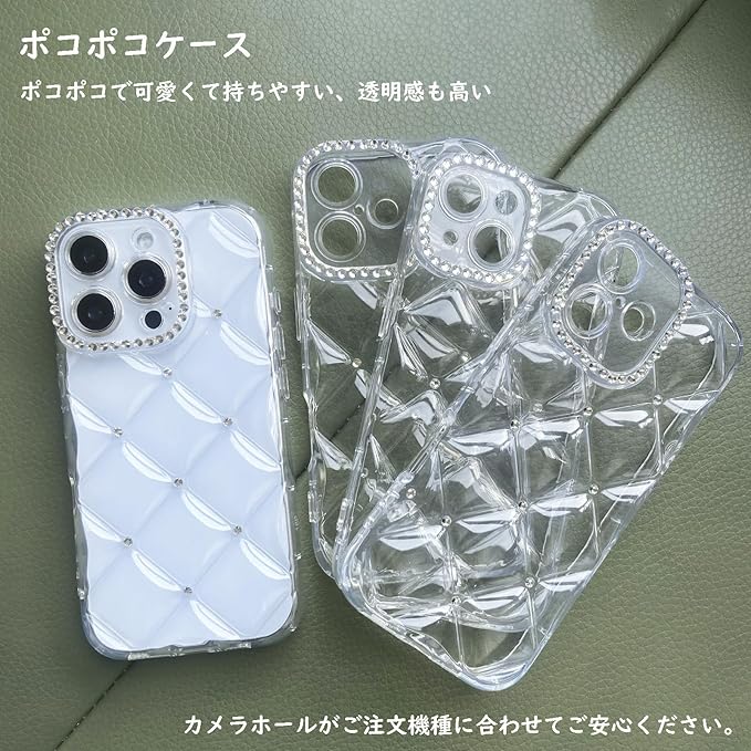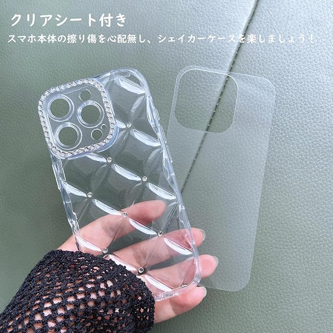 対応 スマホケース iPhone 17 Pro Max ケース キルティング クリア 韓国 可愛い シャカシャカ 小物収納 キラキラ ラインストーン おしゃれ 傷防止クリアシート付き シェイカーケース