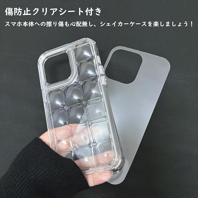兼用 スマホケース iPhone 17 Pro Max ケース 韓国 可愛い ぽこぽこ クリア 傷防止クリアシート付き 人気 おしゃれ シャカシャカ シェイカーケース シンプル 小物収納 ソフトケース