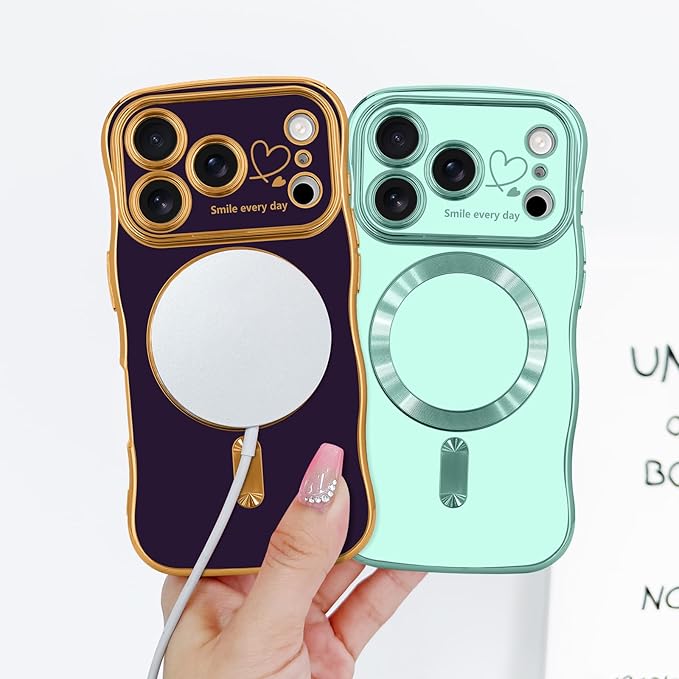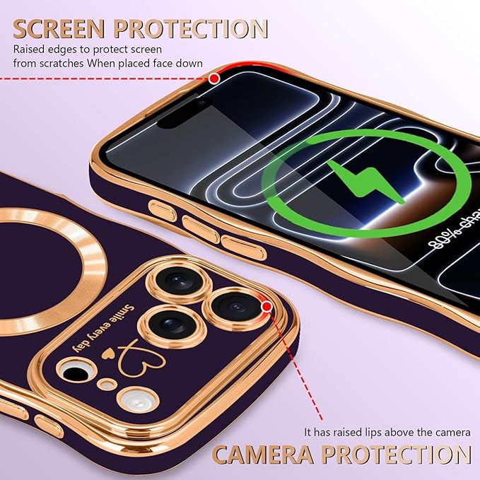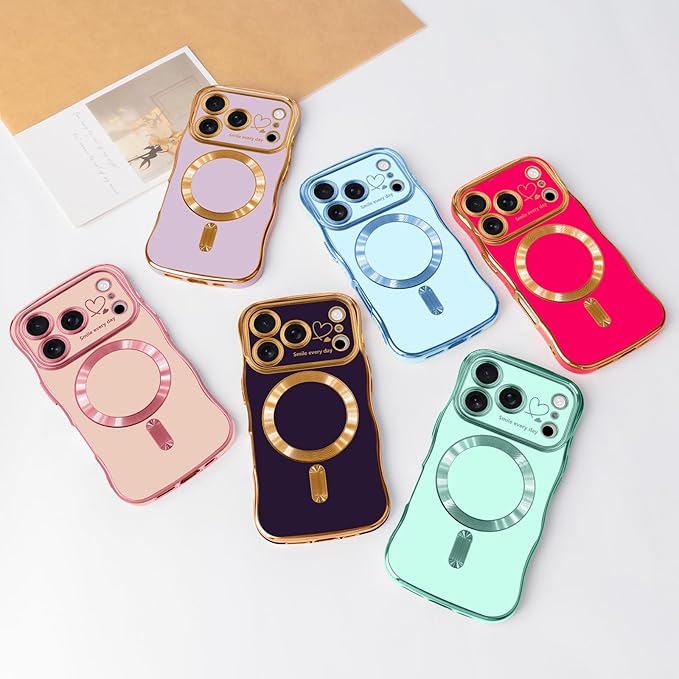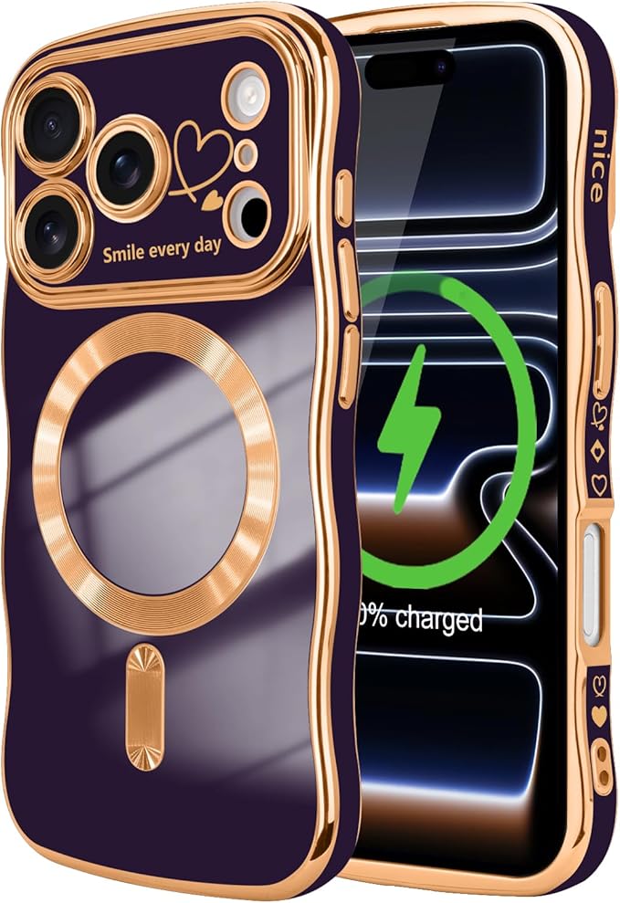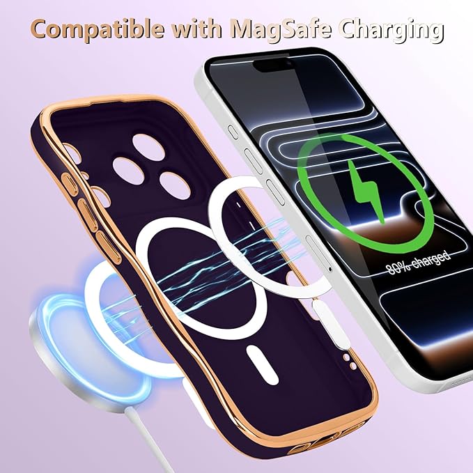 LCHULLE 用の iPhone 17 Pro Max ケース MagSafe 対応 ウェーブ 滑り止め おしゃれ 可愛い マグネットカバー 韓国 耐衝撃 指紋防止 傷つけ防止 軽量 マグセーフ 対応 アイフォン 17 Pro Max 用 スマホケース (ディープパープル)