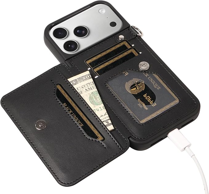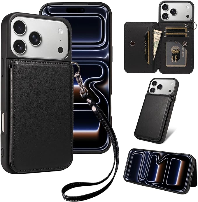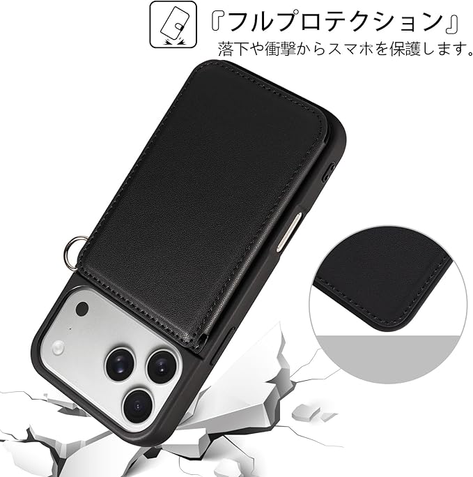 for iPhone 17 Pro Max ケース 黒色 背面 手帳型 ICカード収納 高級PUレザー 人気 おしゃれ 財布型カバー アップル いphone 17 Pro Max用 スマホケース スタンド機能 アイフォン17 プロ マックス 上質 マグネット 携帯保護ケース 男女兼用 薄型 軽量 耐衝撃 落下防止 ストラップ付き ブラック