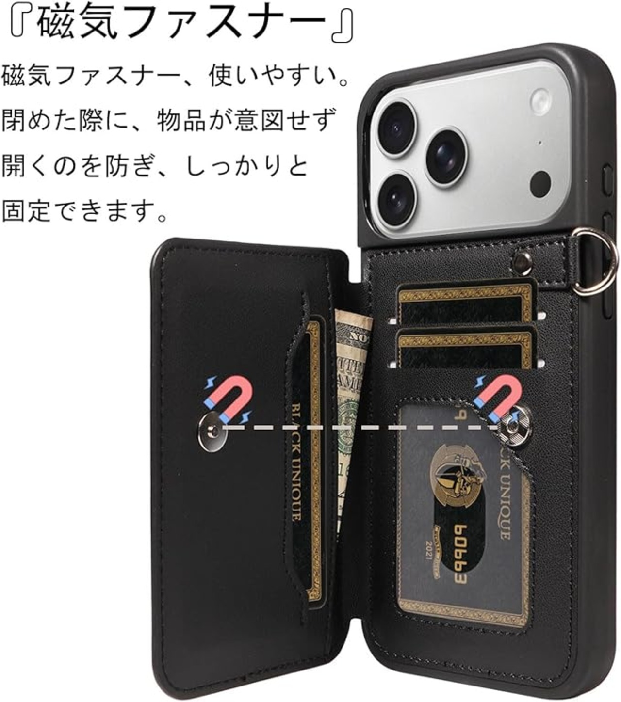 【カード収納】このiPhone 17 Pro Max ケース最大 4 枚のカードを収納可能で、ID カード、クレジットカード、交通系 IC カード、あるいは少量の現金を入れることができます。外出時に余分な財布を持ち歩く必要はありません! ショッピング、旅行、仕事、あらゆるシーンに最適です。